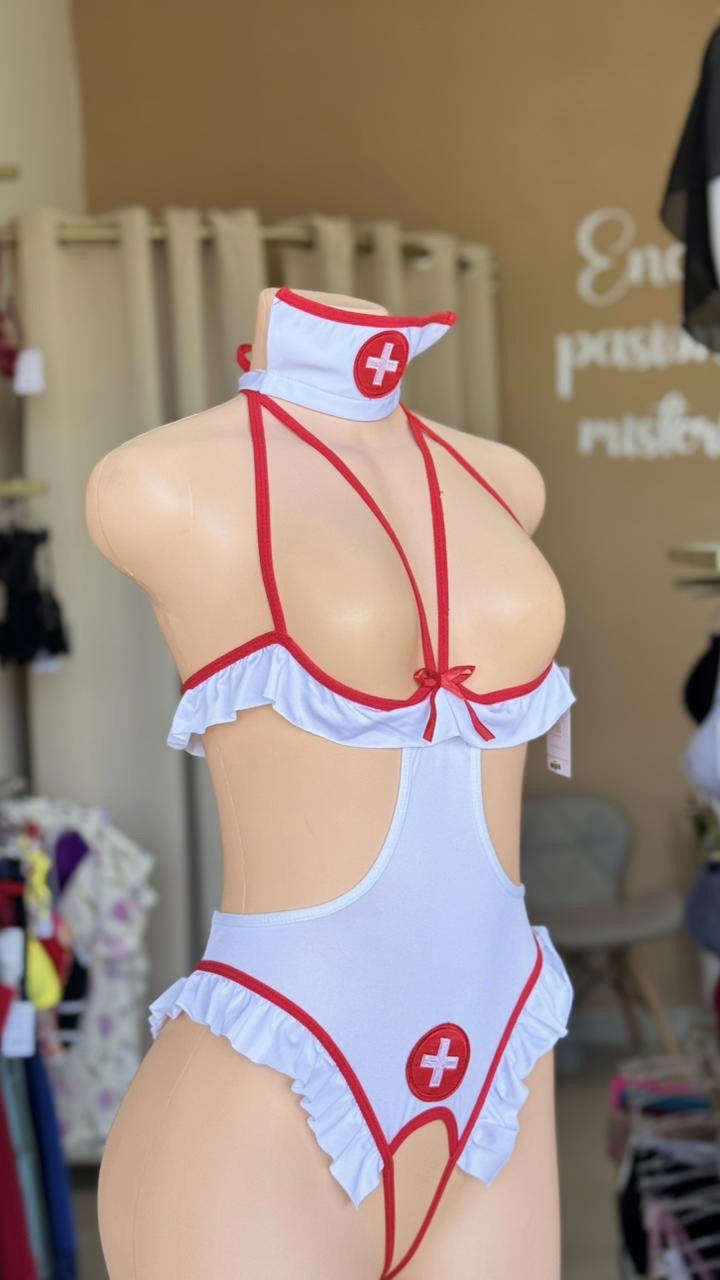 Esta lencería disfraz de enfermera incluye 2 piezas (bodysuit y diadema), perfecta para añadir un toque seductor y divertido a tu vida íntima. Con un diseño realista y materiales de alta calidad, te sentirás como una verdadera enfermera. Haz realidad tus fantasías con este conjunto único y sensual.