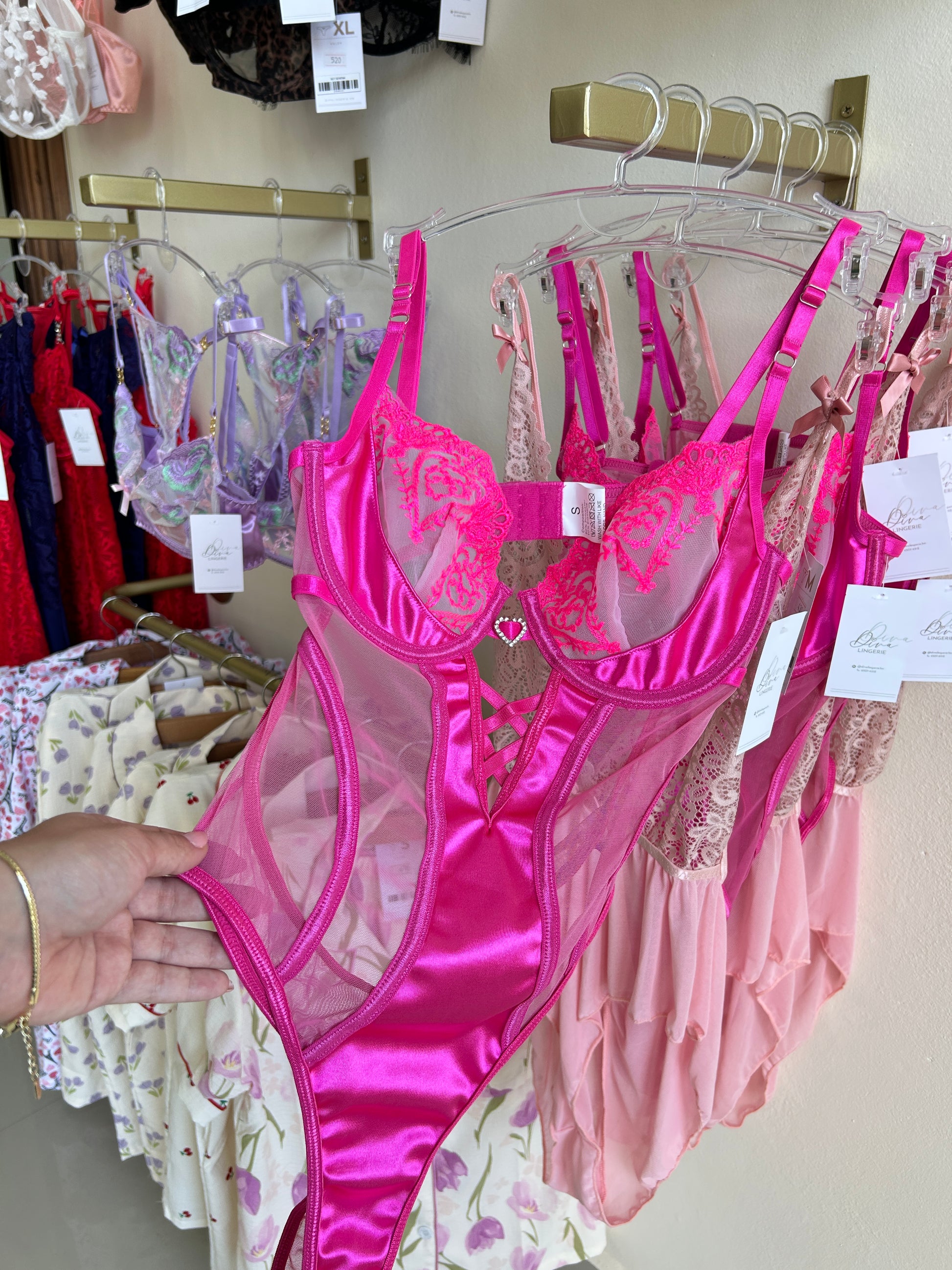 Este bodysuit hermoso en color fuscia con detalle de corazón es una pieza única que te hará lucir hermosa y elegante. Con su diseño en una sola pieza, te brinda comodidad y estilo al mismo tiempo. Perfecto para cualquier ocasión, ¡ilumina tu estilo con Glow!