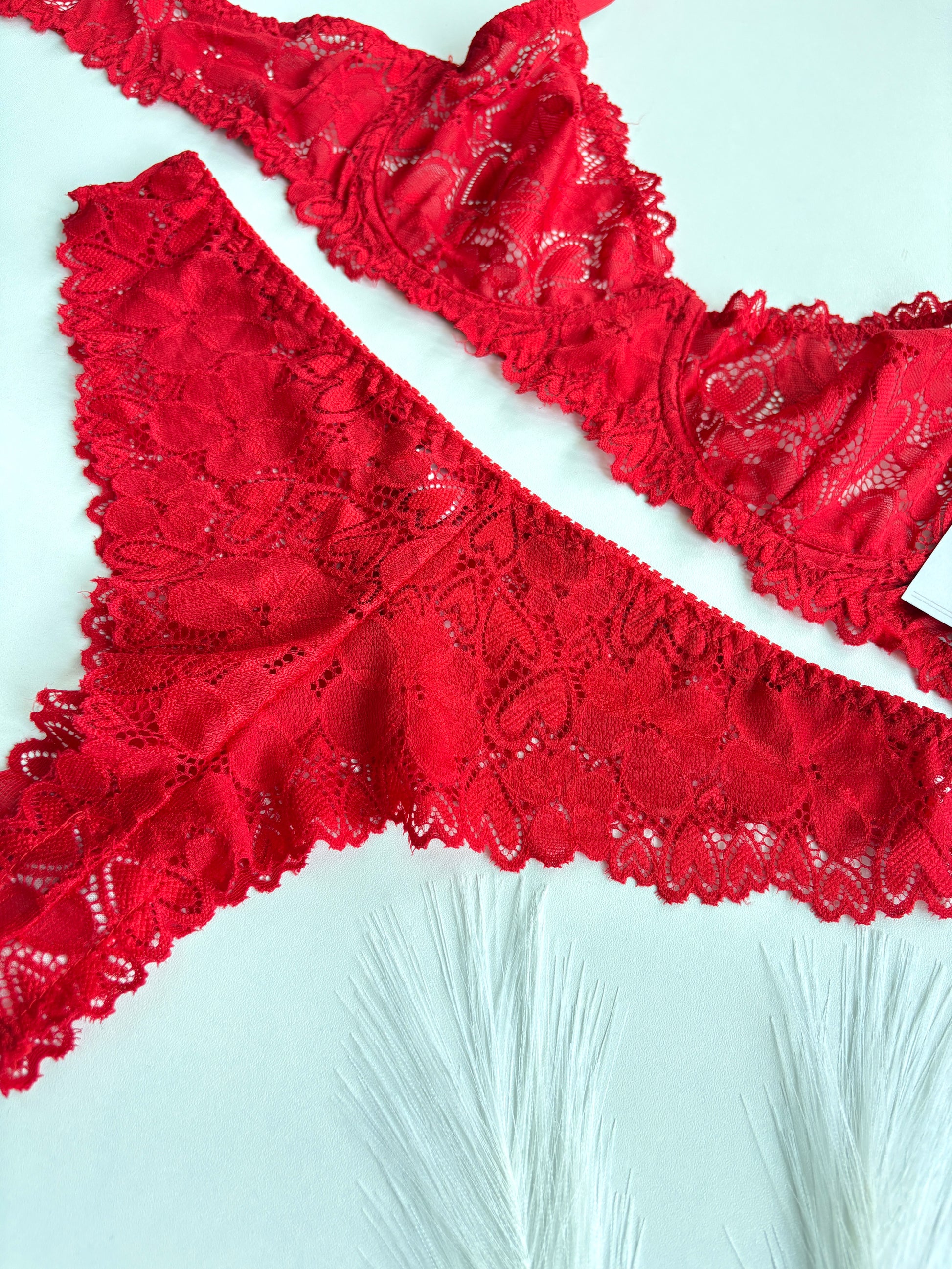 Este set de lencería de dos piezas en encaje color rojo es perfecto para un look sensual y elegante. La suave tela de encaje aporta un toque de feminidad, mientras que el rojo vibrante añade un toque de seducción. Con su ajuste perfecto, este set te hará sentir cómoda y segura de ti misma. ¡Hazte con él y deslumbra en cualquier ocasión especial!