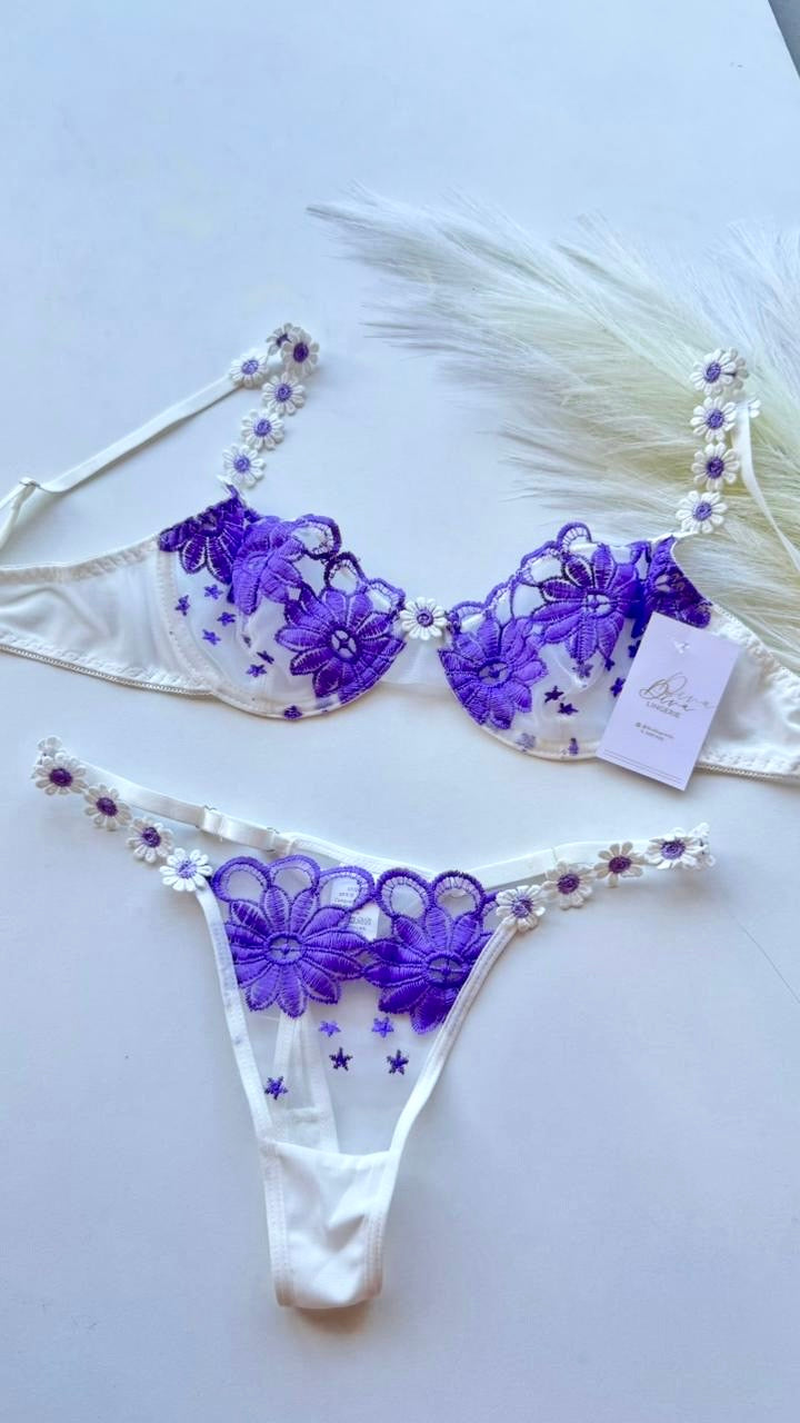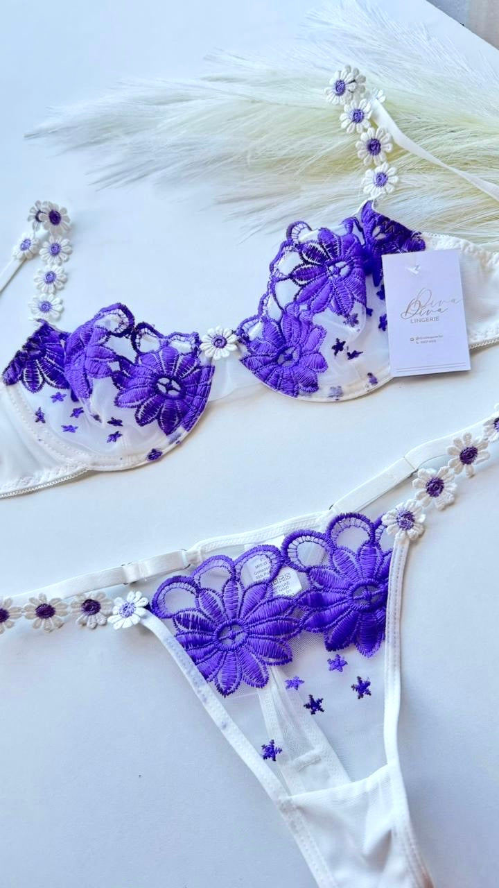 Descubre la elegancia y seducción con nuestro Set de lencería Púrpura Cautiva. Este conjunto de 2 piezas cuenta con un hermoso bordado floral en tonos morados que te hará sentir irresistible. Perfecto para cualquier ocasión especial o simplemente para sentirte segura y hermosa.